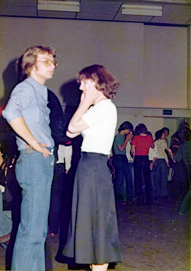 Jürgen Eggloff auf der Tanzfläche mit einer Partnerin vom Sophie-Scholl, die offenkundig die aktuelle Lautstärke der Musik nicht feiern kann.