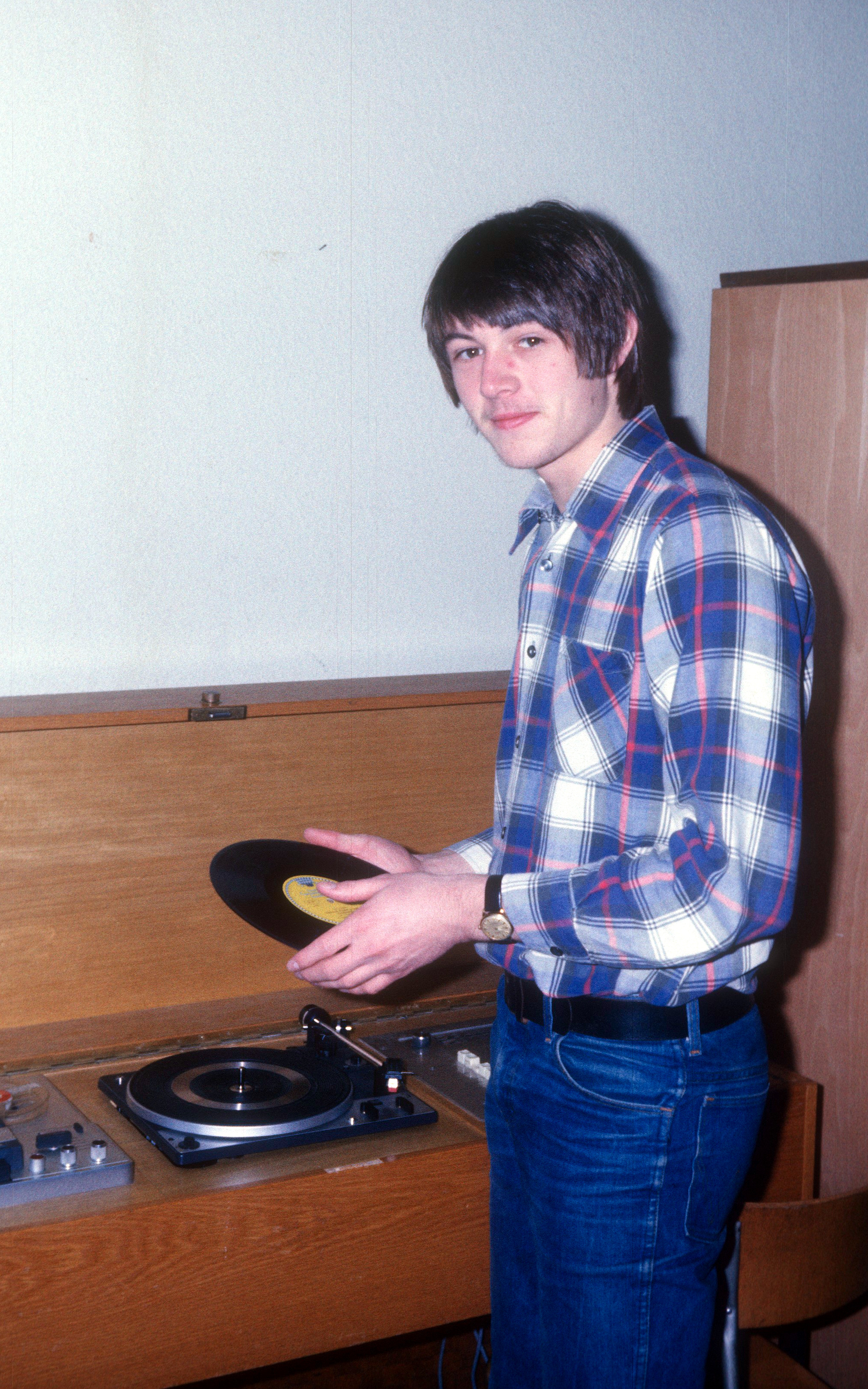 Roland Lisson legt im Musikraum eine Platte auf. Es könnte gut sein, dass es eine der Musikunterrichts-Stunden war, die wir damit gestalteten, dass ein Schüler volle 45 Minuten seinen Lieblingstücke vorstellte. Roland hat allem Anschein nach gerade ein Klassikstück ausgewählt.