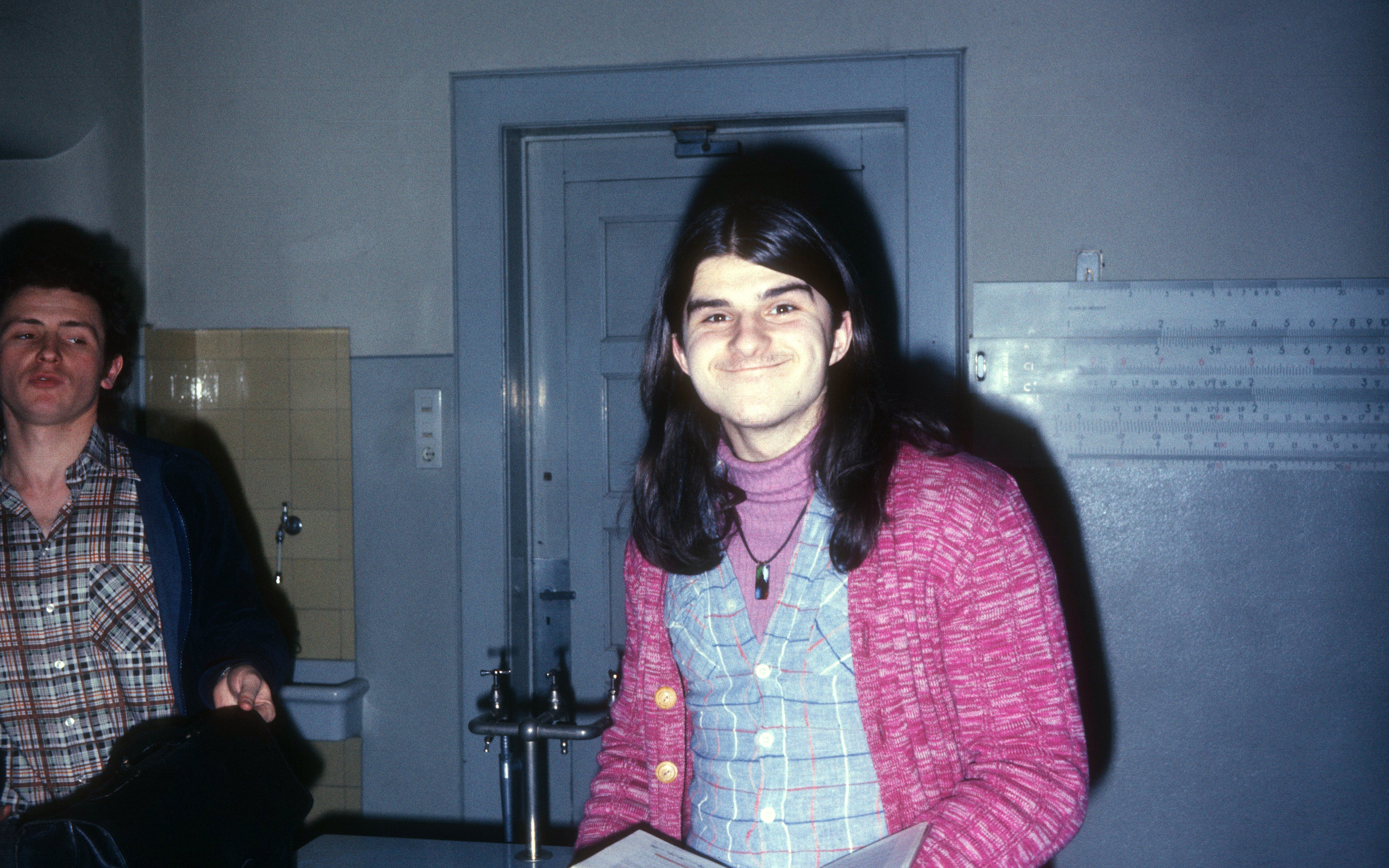 Ein Portrait von Stephan Vrban. Sein Spitzname war aus unverständlichen Gründen „Mäuschen“, was noch rätselhafter wird, wenn man bedenkt, dass sich über ihn hartnäckig das Gerücht hielt, dass er irgendeine asiatische Kampfkunst beherrsche und darin richtig gut sei. Links im Bild ist Herr Pithan, der Physiklehrer.