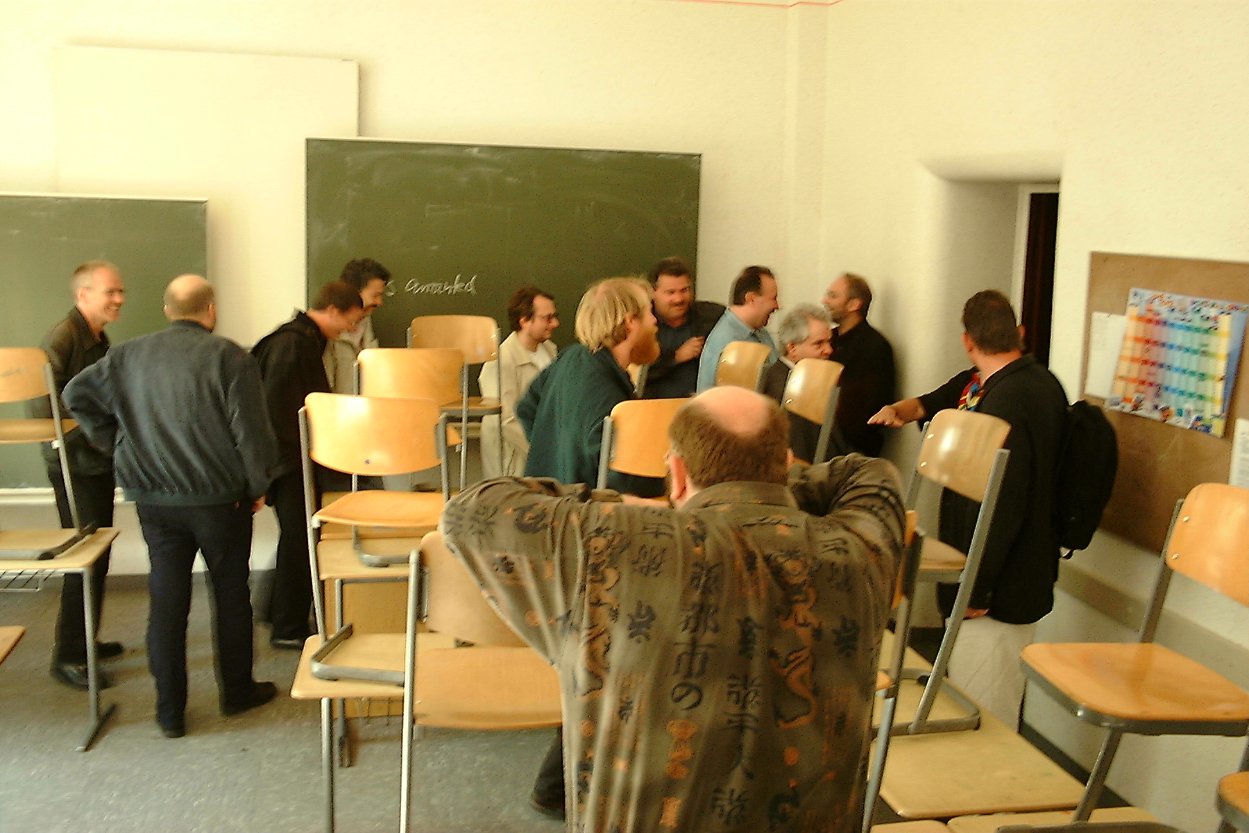 im Parterre. Laut Jürgen Münster handelt es sich um den Klassenraum der Sexta b. Im Vordergrund Wolfgang Nickel,