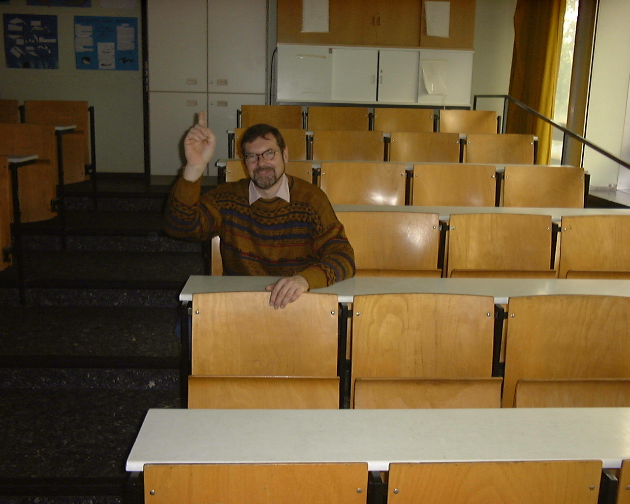 ich weiß was!“) im einzigen Unterrichtsraum, der heute noch eine ansteigende Bestuhlung hat (sich allerdings