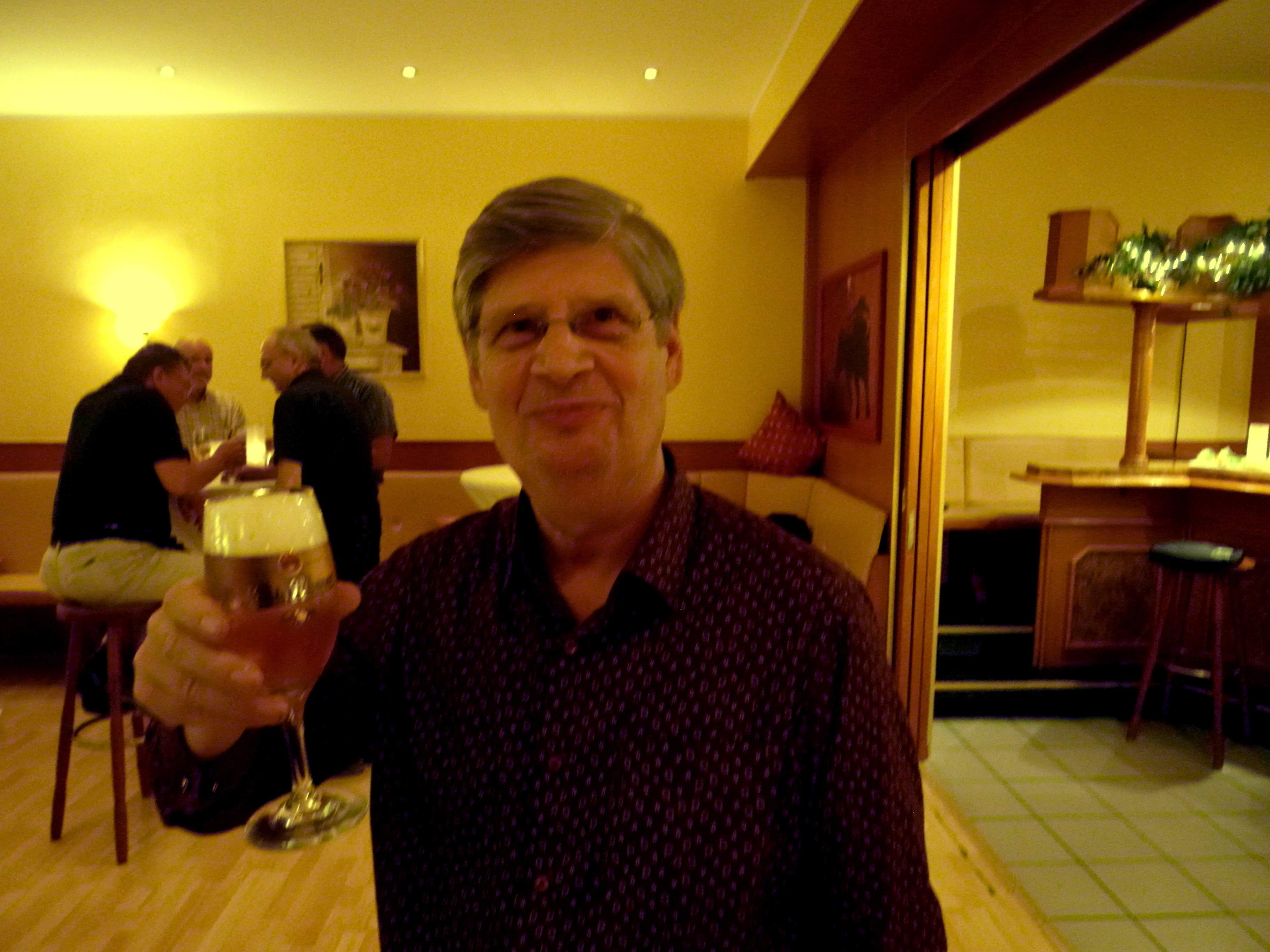 Praktisch alle Bilder, die ich an diesem Abend gemacht habe, sind von einem penetranten Farbstich befallen, den kein Korrekturprogramm ausgebügelt bekommt. Sobald ich hier eine Weißkorrektur anwende, leuchten Eckhards Augen in einem wunderbaren Violett.