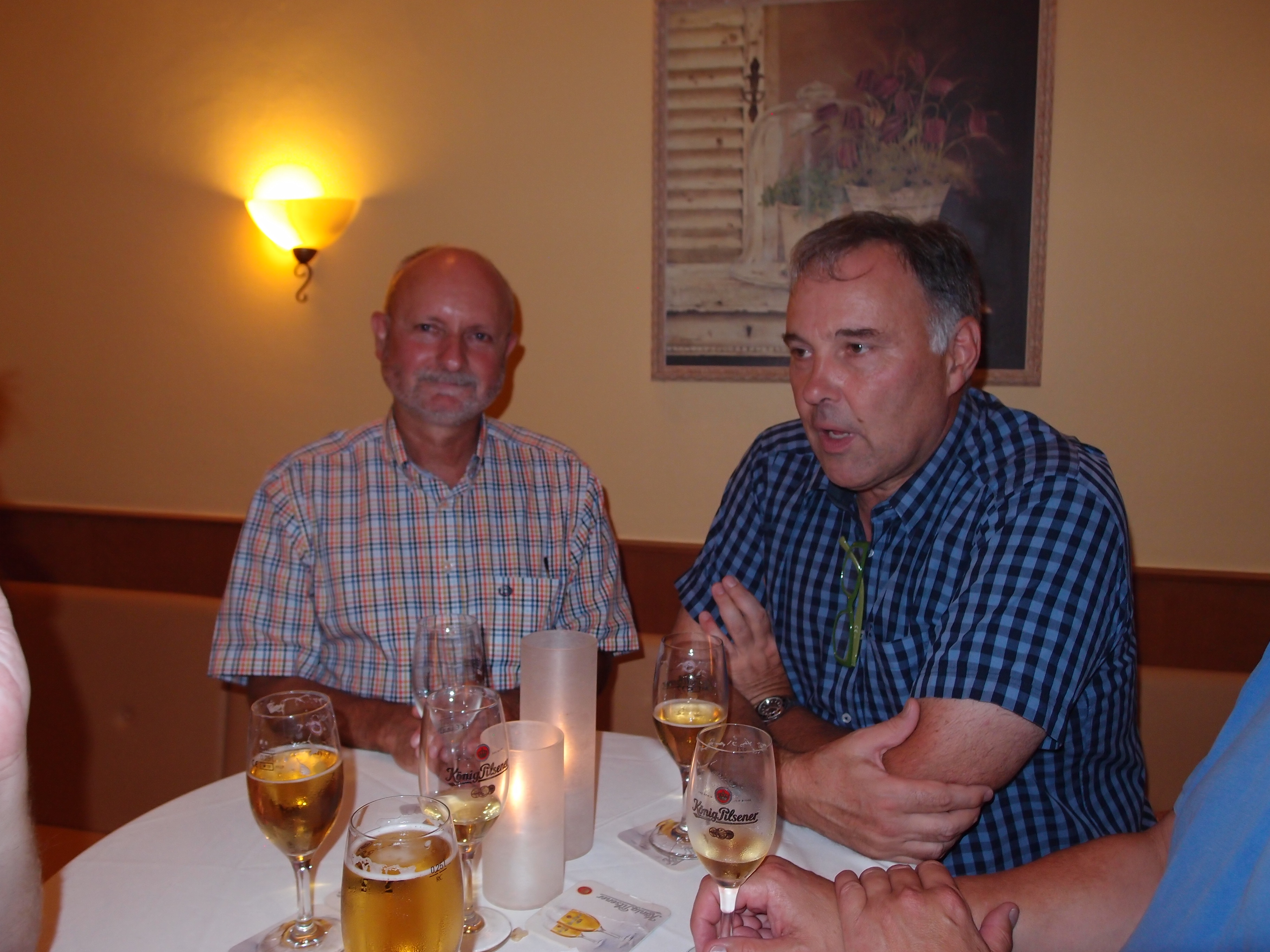 Heinz-Dieter Plöger und Heino Nefen. Ich wollte schon eine freundliche Bemerkung darüber machen, dass immerhin einige von uns noch ohne Brillen auskommen, doch dann sehe ich in der Vergrößerung (Klick auf das Bild) den Brillenbügel der Lesebrille in Heinz-Dieters Hemdtasche...