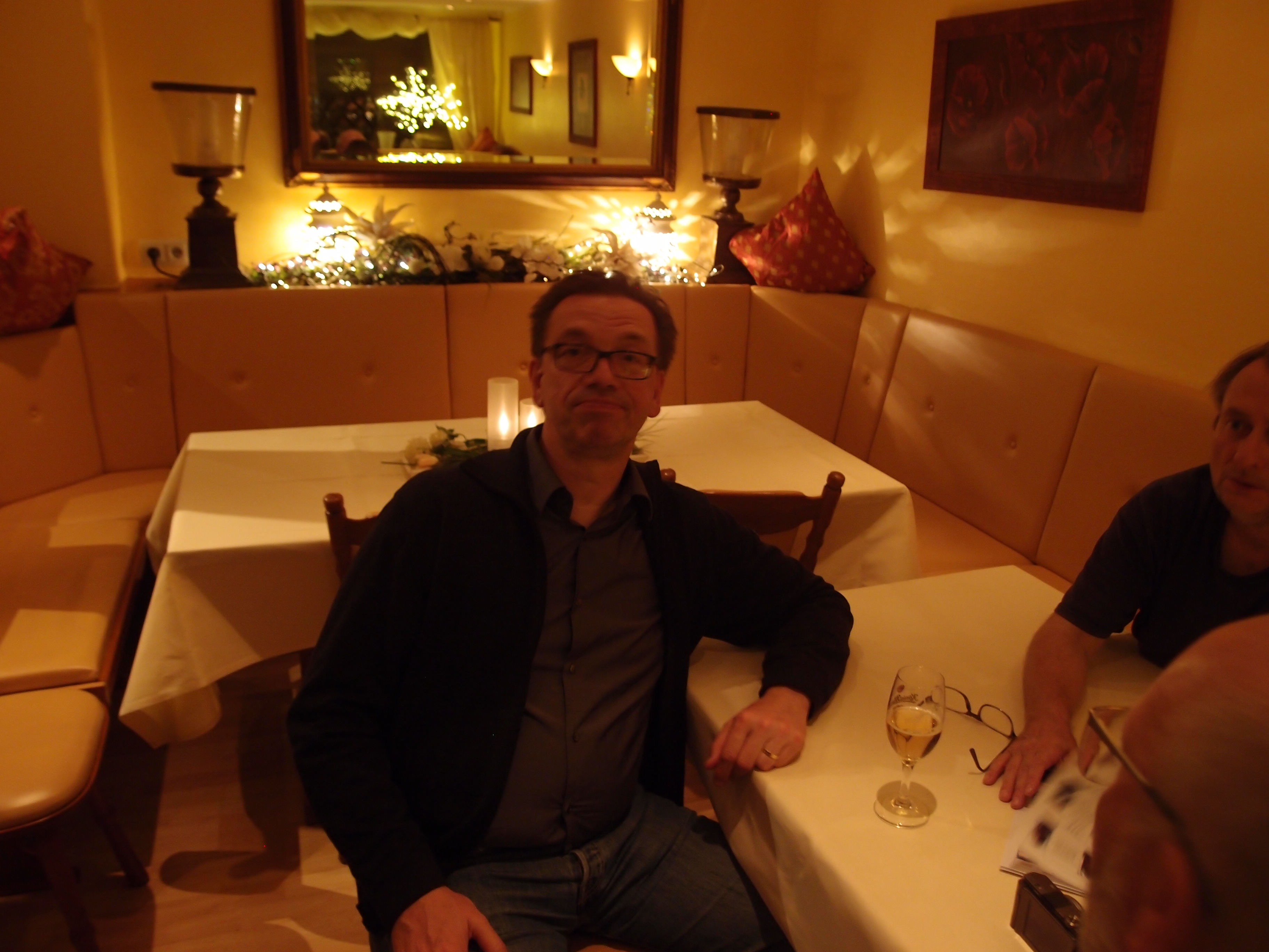 Ich bin Ludger dankbar, dass es wenigstens ein Bild von mir an diesem Abend gibt, auch wenn es nicht gerade das vorteilhafteste überhaupt ist. Allerdings hatte seine Olympus noch mehr Probleme mit dem Bildrauschen bei schwachem Licht als meine Samsung.
