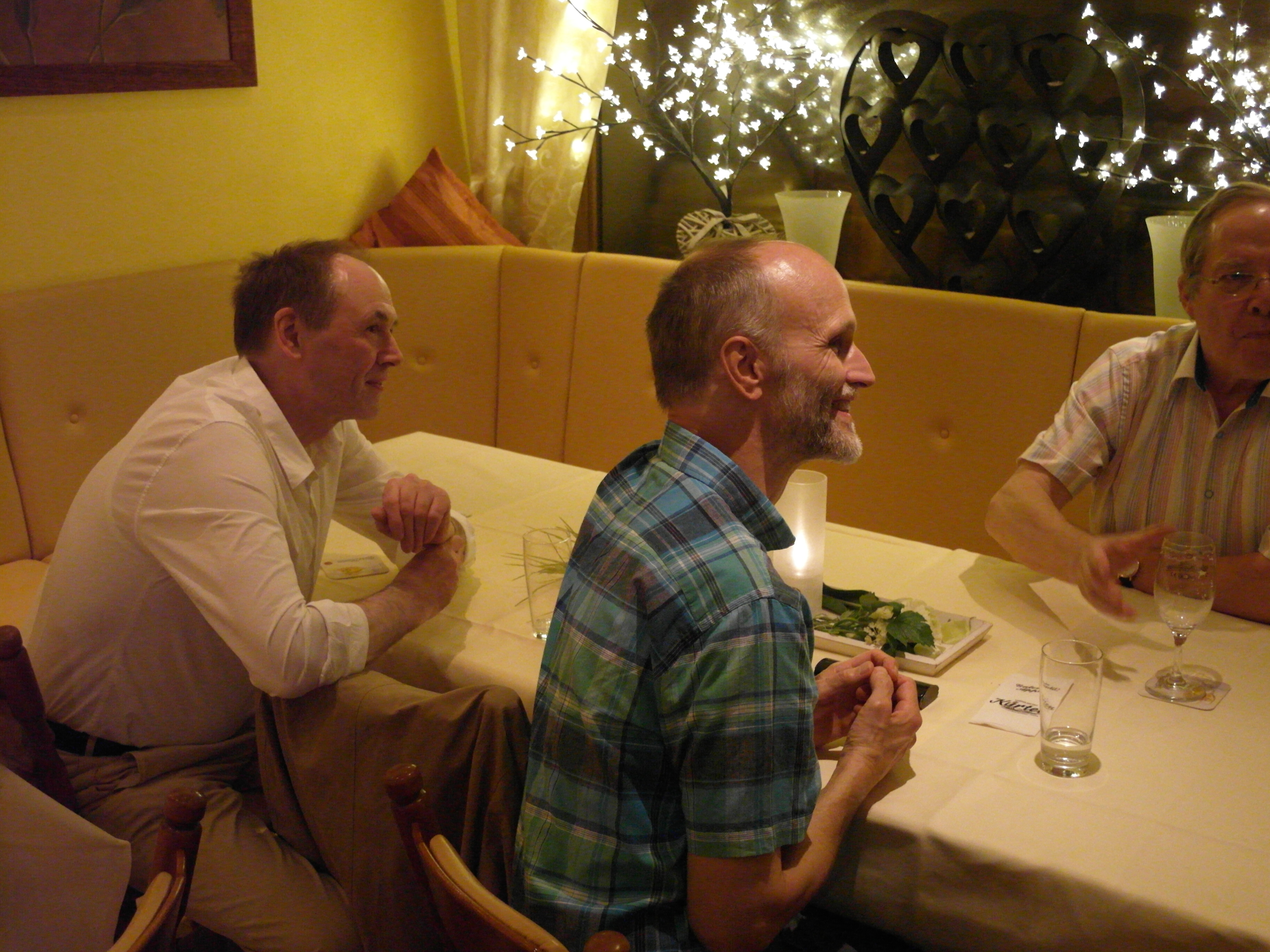 Solche aufmerksame Zuhörer hat Herr Schmitz in uns vor 40 Jahren nicht so oft gehabt. Hier lauschen angeregt Roland Lisson und Georg Esser.